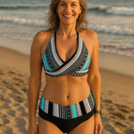 Este biquíni combina cores vibrantes com um caimento esportivo que disfarça suavemente e sustenta a barriga e os quadris. As alças ajustáveis garantem um ajuste perfeito, sem apertar. Ideal para mulheres que querem se sentir livres e confiantes sem se preocupar com a silhueta.
