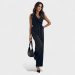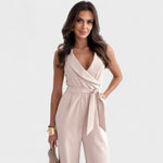 Transforme seu visual com este macacão sofisticado e minimalista. Com decote transpassado, modelagem reta e cinto embutido na cintura, ele realça a silhueta com classe e discrição. Ideal para eventos sociais, jantares, trabalho ou um look poderoso no dia a dia, essa peça é a definição de versatilidade com elegância.