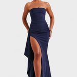 Entra com confiança em qualquer sala com o Zafira Maxi Dress – uma fusão perfeita entre sofisticação moderna e sensualidade clássica. Este vestido em azul-marinho, com corte justo e uma ousada racha lateral, é feito para quem quer destacar-se com estilo e graça.