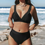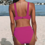 Este biquíni combina a elegância intemporal com um suporte suave e sem aros e uma cintura subida que disfarça delicadamente a barriga. O seu design clássico adapta-se a qualquer silhueta e garante um ajuste confortável sem apertar. Disponível em cores modernas, encontrará sempre a combinação perfeita. Ideal para mulheres que querem sentir-se confiantes e estilosas na praia ou na piscina.