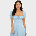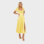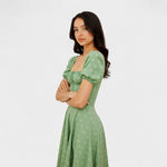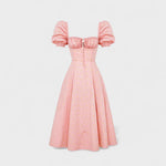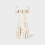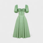Este vestido midi delicado e manga bufante é a escolha perfeita para quem procura um look romântico e fresco. O corte com decote quadrado realça o colo de forma subtil, enquanto a fenda frontal acrescenta um toque de sensualidade sem perder a leveza. Ideal para dias de sol, passeios ou eventos casuais, combina charme e conforto com um toque vintage irresistível.