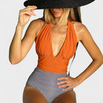 Este fato de banho é a fusão perfeita entre o charme retro e a sofisticação atual. Com um decote profundo em halter e cintura subida, valoriza a silhueta feminina enquanto oferece suporte e conforto. Ideal para quem quer destacar-se com classe à beira-mar ou na piscina, sem comprometer o bem-estar.