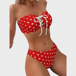 Com este biquíni encantador, cada dia de praia transforma-se num verdadeiro romance de verão. O padrão de corações vermelhos sobre fundo branco transmite leveza, feminilidade e diversão, enquanto o detalhe em laço e as bordas onduladas adicionam um toque delicado e vintage. Perfeito para quem adora destacar-se com charme e confiança, este biquíni é uma ode ao amor-próprio e aos dias de sol.