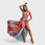 O Karina - Vestido Elegante e Fresco cria uma entrada inesquecível com sua silhueta fluida e design vibrante em aquarela. Perfeito para festas à beira-mar, férias tropicais ou qualquer momento que peça elegância marcante.