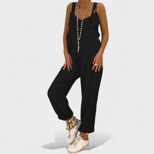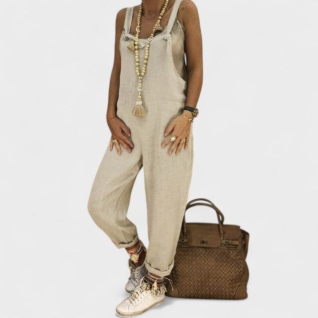 Deixe seu visual falar por você com esse macacão estilo jardineira feito de algodão e linho. Com um caimento solto e modelagem reta, ele é ideal para quem busca liberdade de movimento e um toque rústico-chique no look. A peça é perfeita para combinar com acessórios artesanais, tênis ou sandálias, criando uma estética natural e descomplicada.